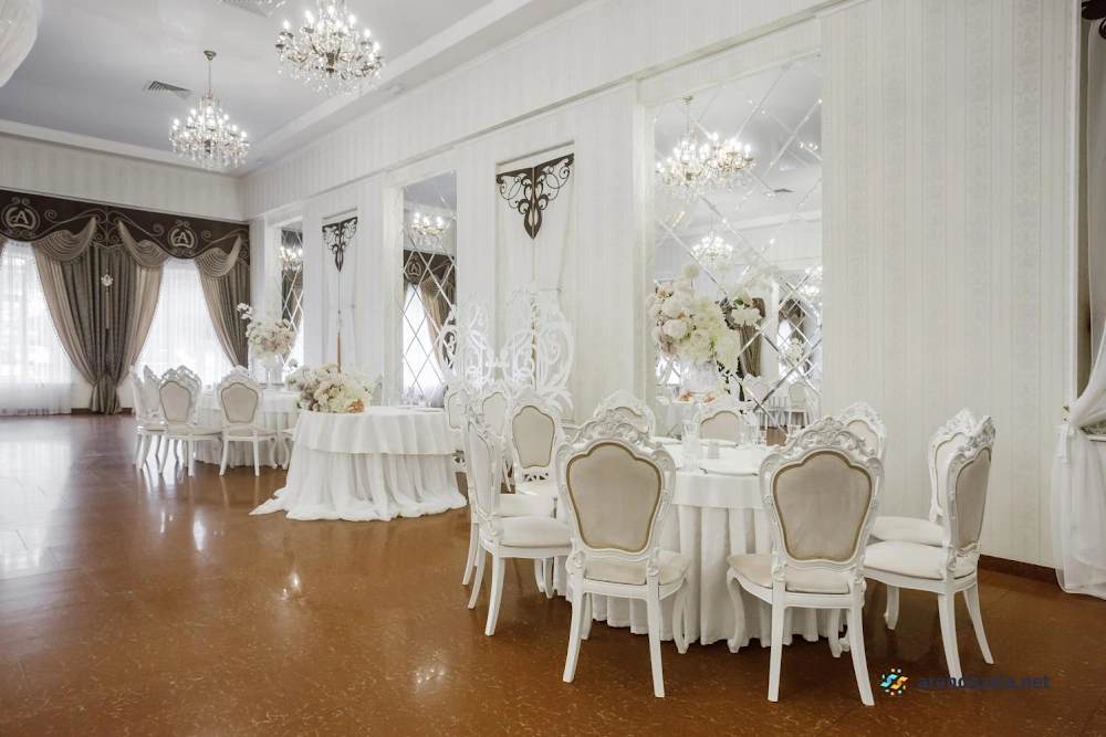 В светлом и роскошном зале с королевским интерьером располагается заведение, предлагающее изысканные блюда высокой кухни, поданные с безупречным вкусом. Приветливый и внимательный персонал обеспечивает безупречное обслуживание гостей. Заведение располагает удобной парковкой, а также предлагает уютные номера для отдыха после торжественного мероприятия или просто размеренного времяпрепровождения в приятной атмосфере. Разнообразное меню удовлетворит запросы любого гурмана, будь то завтрак, обед или ужин.